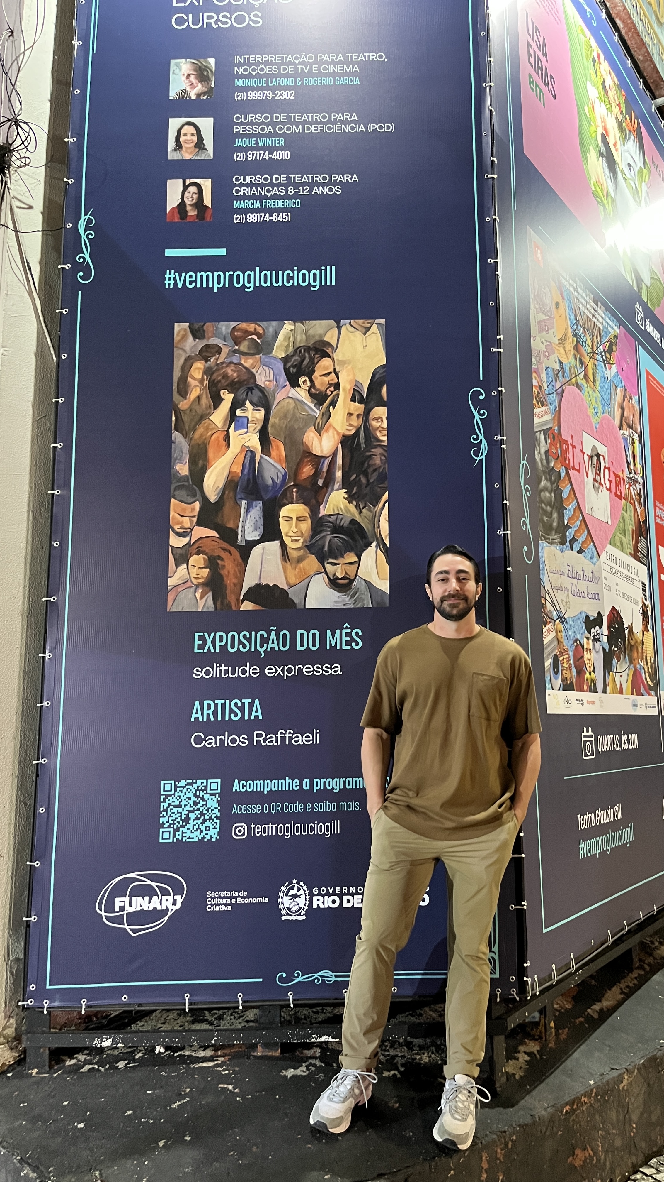 the exhibition “solitude expressed”, at teatro glaucio gill, rio de janeiro, in july 2023 highlights the artist’s work over a 2-year course. with 15 new canvases on display that address sensitive themes in the artist’s work, such as loneliness, use of technology, nature, childhood, memory and escapism, the exhibition offered a comprehensive view of the artist’s artistic evolution and concerns.